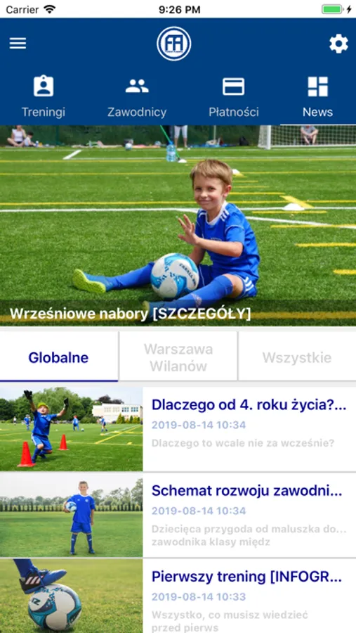 Bądź zawsze na bieżąco z tym, co dzieje się w Twoim ośrodku największej sieci szkółek piłkarskich dla dzieci w wieku 4-12 lat w naszym kraju, gdziekolwiek jesteś!