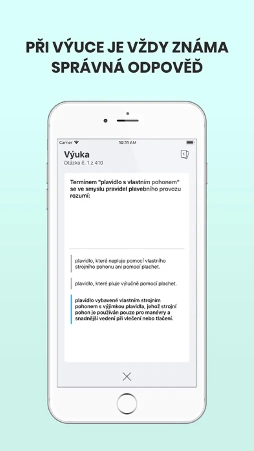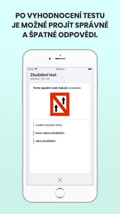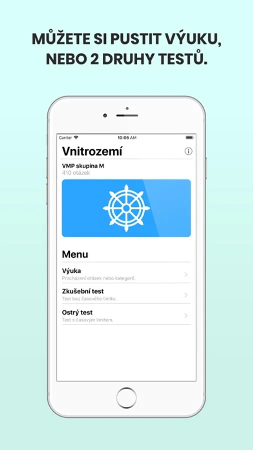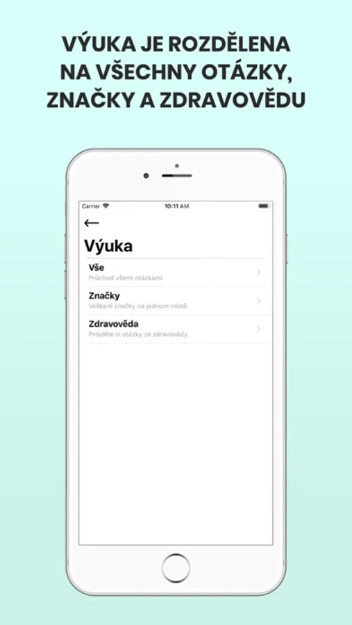• Výuka (rozdělena na všechny otázky, značky a zdravovědu)