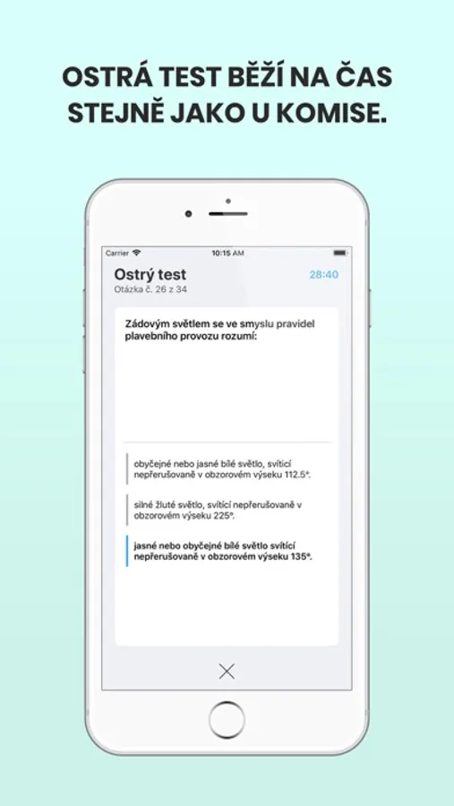 • Ostrý test (náhodně vygenerované otázky s časovým limitem)
