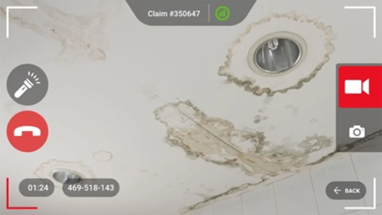 Using this app, you can continue speaking with the claim professional over the phone, while enabling you to share what you are experiencing through a live video feed from the camera on your mobile device. No more recording of pictures, videos, and doing uploads.