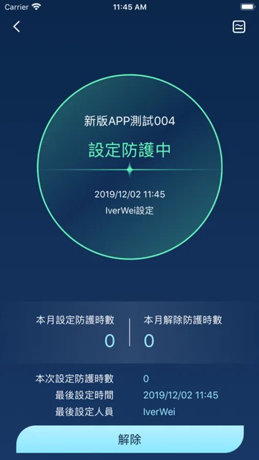 4. 系統即時狀態顯示(設定或解除中/操作者/時間)