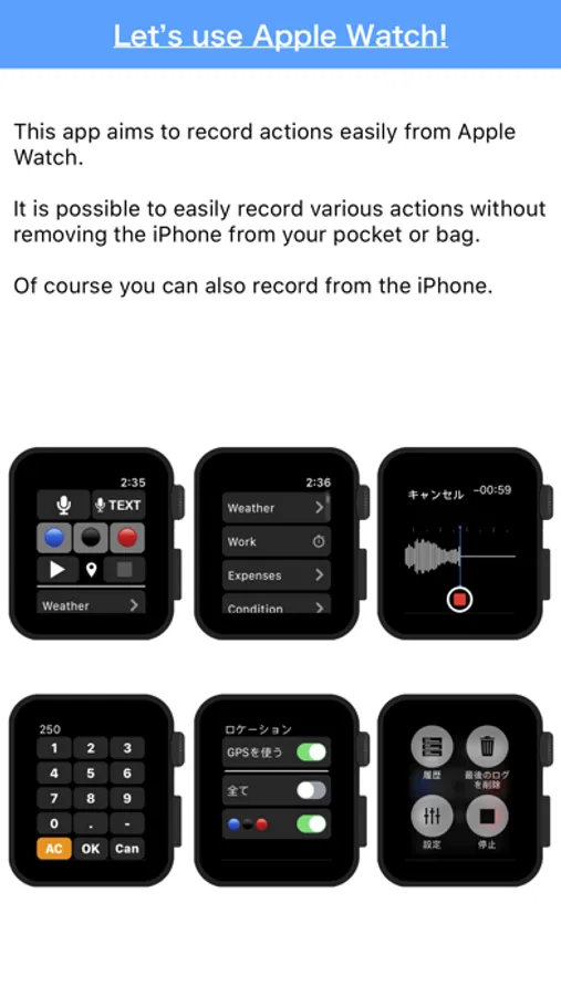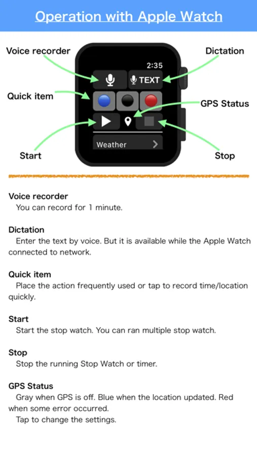 You can record “Time” and “Title”. Just tap the title in the list on App Watch, take a log the time and title. You can app the number and location information.