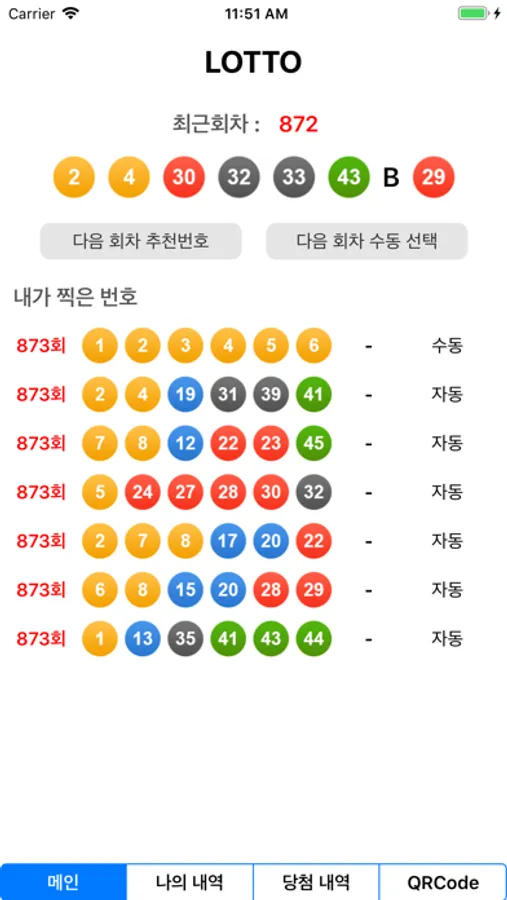 내가 구입했던 로또 번호 내역 관리 및 로또 번호 추천