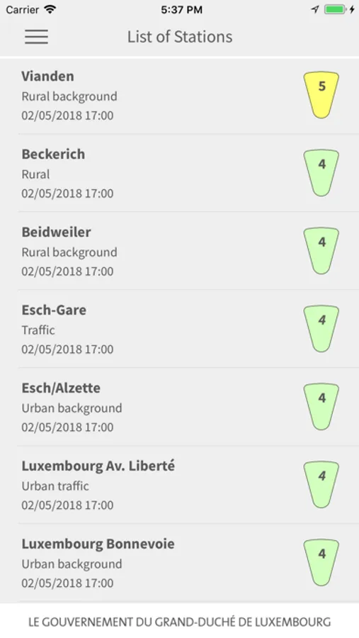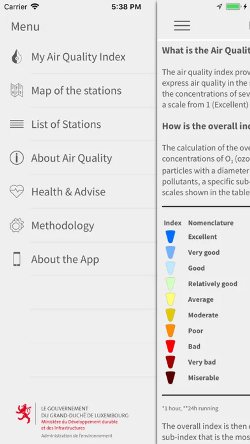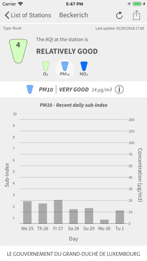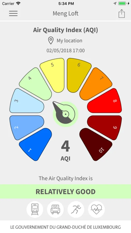 • Check the latest air quality data, illustrated using Luxembourg's official Air Quality Index (AQI).