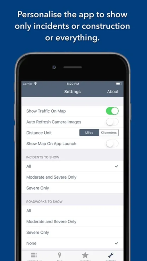 - Shows at a glance the nearest current traffic incidents without launching the app.