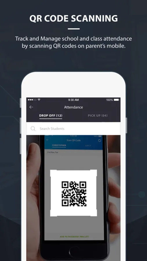 QR Code - Track and Manage school and class attendance by scanning QR codes on parent’s mobile.