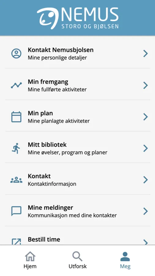 App for NEMUS klinikker, Norges største kjede innen behandling og forebygging av muskelskjelettplager. Appen er for både eksisterende og nye pasienter.