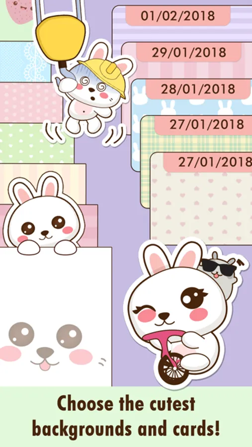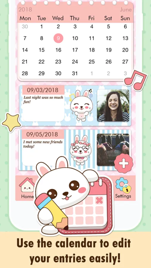 ** Try out this “cute diary” free of charge and enjoy using our gorgeous kawaii emoticons and funny fonts for your diary entries. Write in your private “diary with lock” and enjoy having the cutest Niki the Rabbit as your own personal assistant!