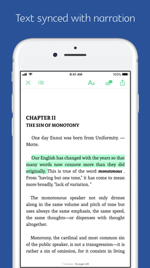 Thanks to sync narration feature, you can change from reading to listening or vice versa easily.