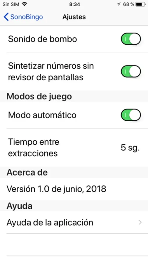 Incluye un modo de juego automático en el que la generación de números se hará sin la intervención del usuario con un tiempo entre extracciones prefijado por éste.