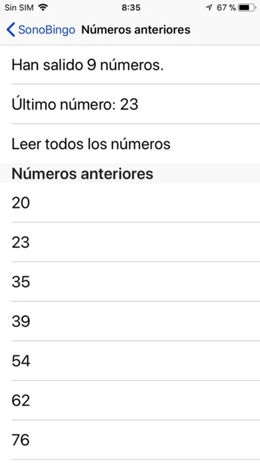 Permite además comprobar la validez de una línea o bingo cantado por algún jugador y acceder al histórico de números que han salido con anterioridad.