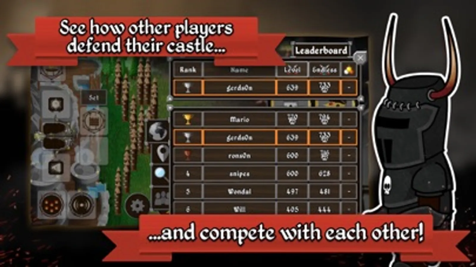 See how other players defend their castle and compete in global leaderboards. Participate in the season system: a fresh leaderboard is started every few month to create a fair competition with thousands of other defenders. Play dailies and quests to collect huge bonuses and get ahead of the competition. Reach the highest rank and have the highest level of all players with the best strategy and grow to be a tactical mastermind.