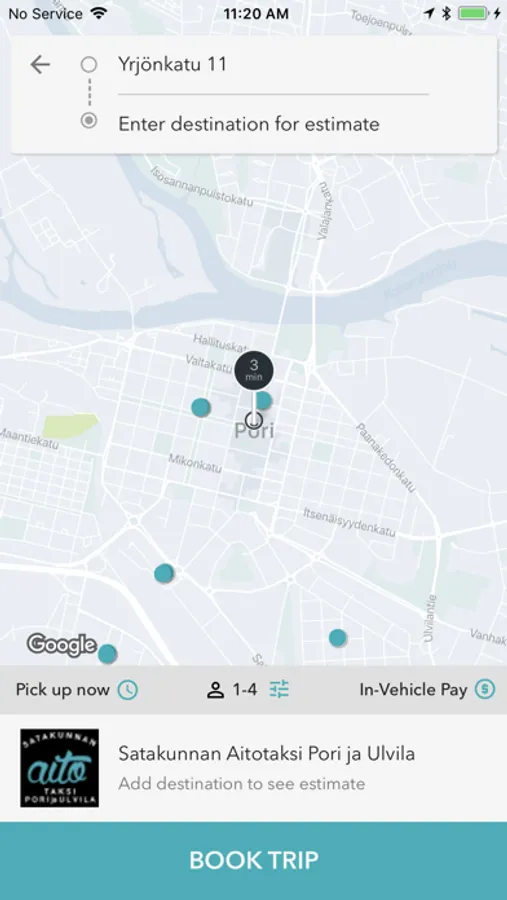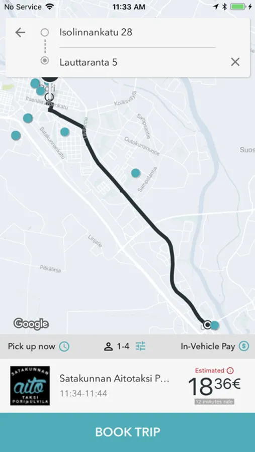 Order a taxi cab in Pori and Ulvila in Finland from Satakunnan Aluetaksi Oy using your iPhone