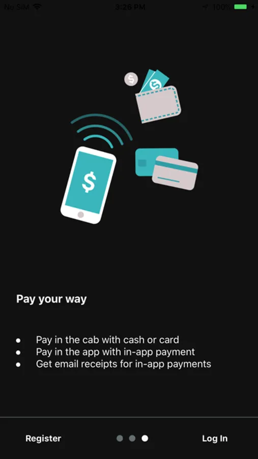 • Push notifications alert you when your cab is on the way, and when it has arrived.