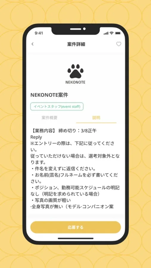 イベントや展示会で働くスタッフのためのお仕事管理アプリ「NEKONOTE(ネコノテ)」