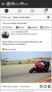 - Red Social: Sube fotos de tu moto, videos, comparte rutas, organiza eventos, quedadas, concentraciones y únete a los que creen otros usuarios.