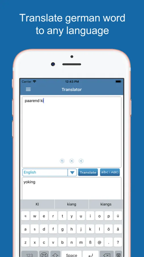 - German Dictionary and Translator is provide German keyboard to type in German. German keyboard also provide the suggestions during typing automatically.