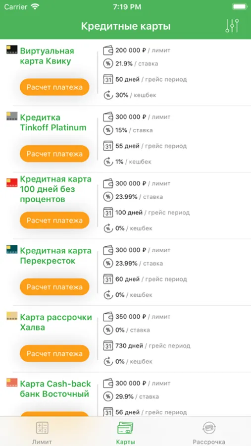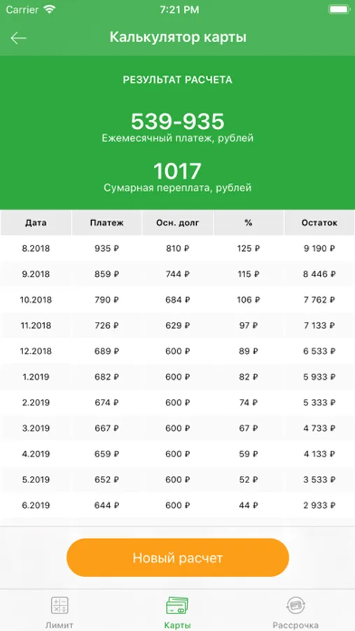 2. Если у вас карта рассрочки, приложение составит график платежей по карте рассрочки и поможет понять, сколько нужно платить каждый месяц.