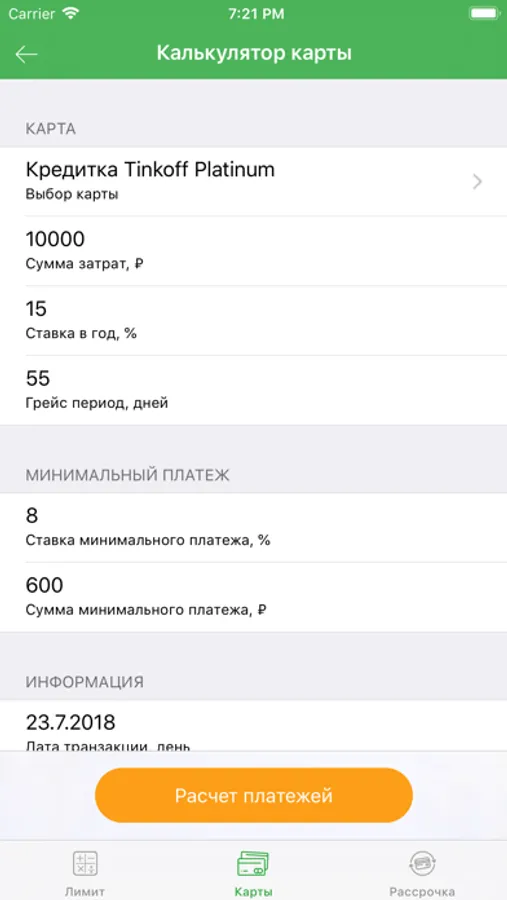 Приложение "Кредитница" поможет вам произвести расчет платежей по кредитной карте.