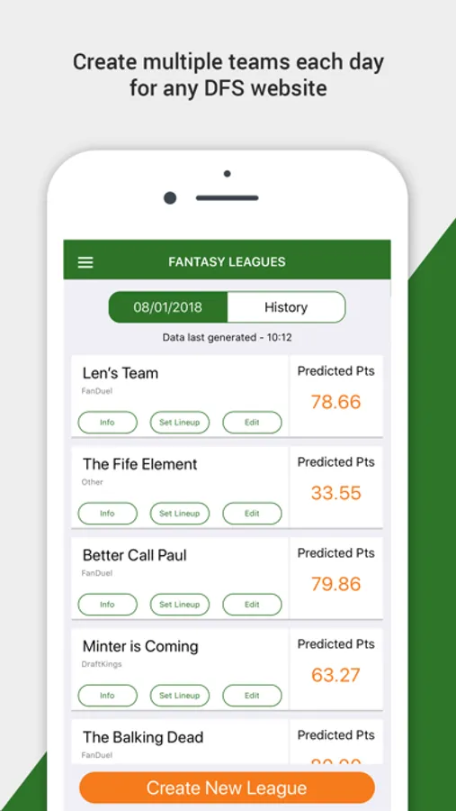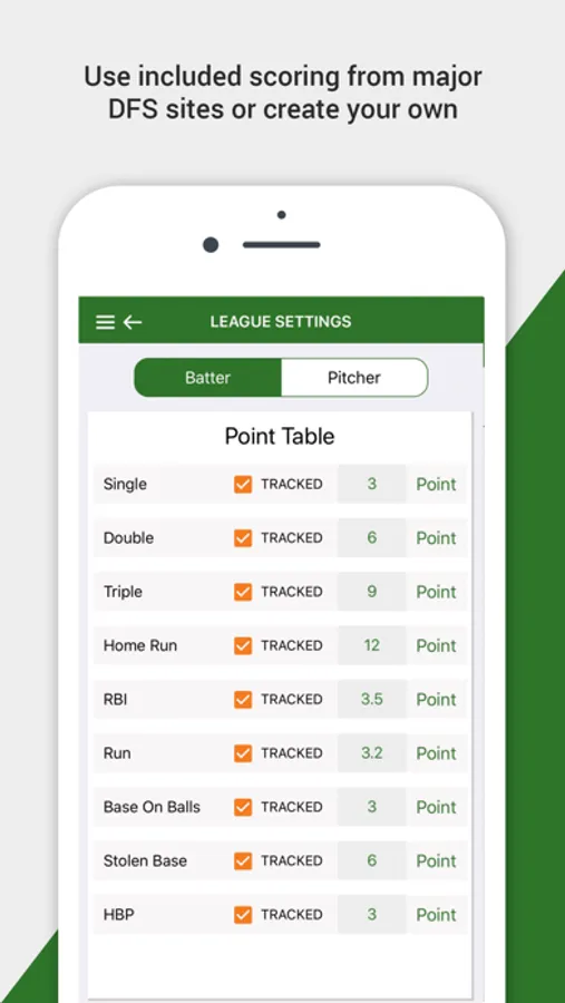 Choose from pre-set point structures from major DFS websites or customize your own to match the settings you are using. Easily compare players side by side to make your ideal lineup choices.