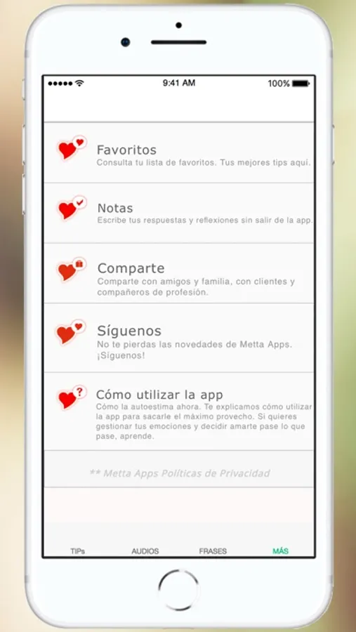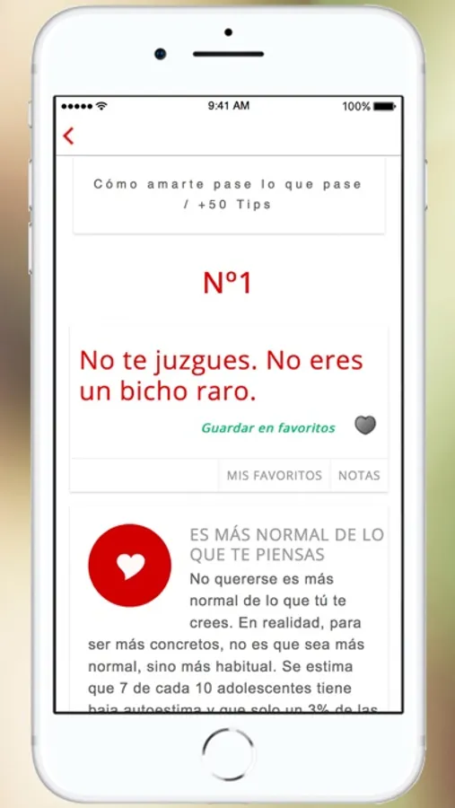La autoestima es el pilar de la felicidad. Si quieres saber cómo amarte a ti mismo pase lo que pase y para siempre, aquí tienes más de 25 tips de autoayuda y autoestima basados en la psicología general y la psicología positiva. Esta app es una guía de autoayuda completa para seguir paso a paso los consejos y lograr la felicidad, la autoconfianza, la seguridad personal y el auto amor. Te acompañamos en tu crecimiento personal.