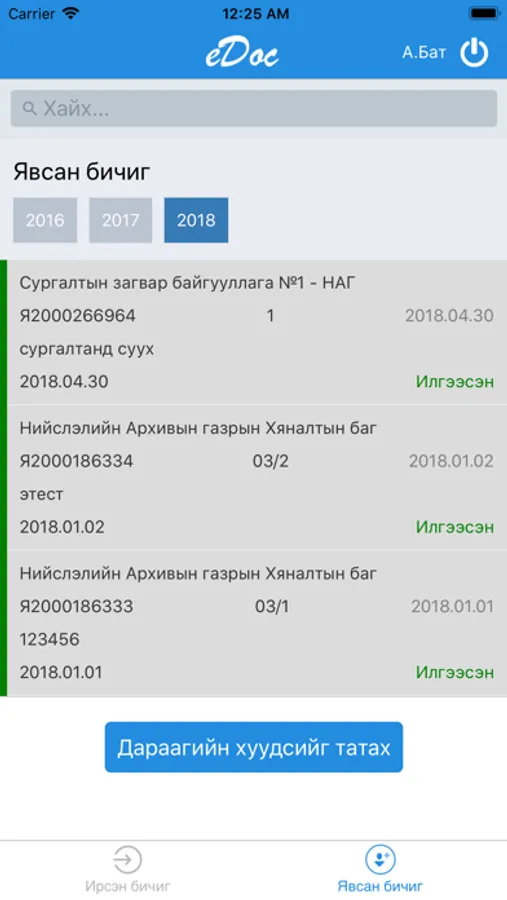 Энэхүү програм нь Нийслэлийн харьяа байгууллагууд ашигладаг “Архив албан хэрэг хөтлөлтийн систем” – ийн (https://edoc.ub.gov.mn) гар утсан дээрх хувилбар юм