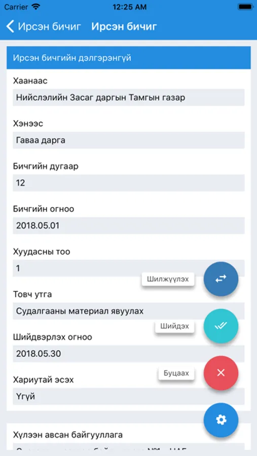 o Бичгийг шилжүүлэх, шийдвэрлэх, буцаах