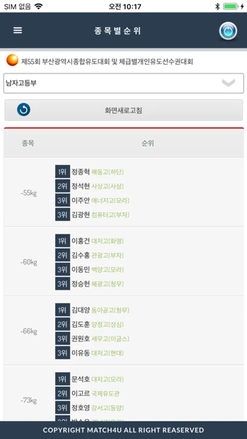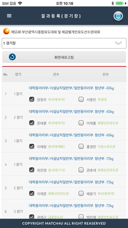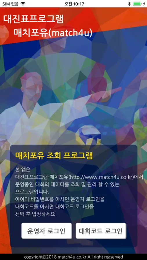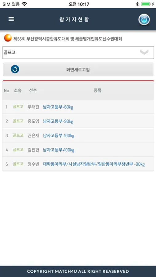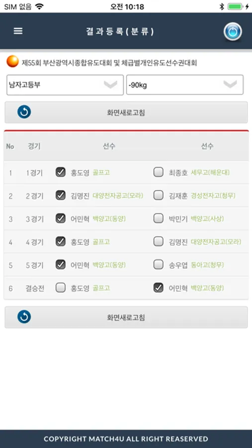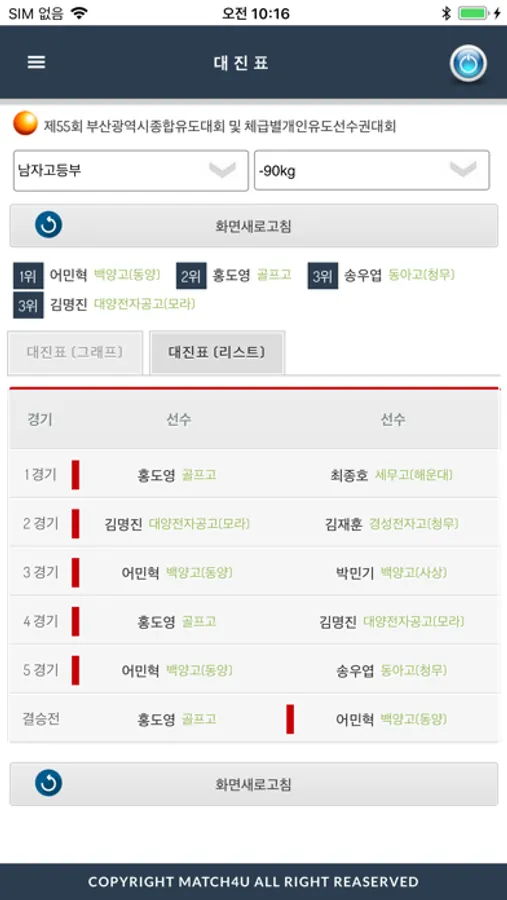 매치포유 앱은 http://match4u.co.kr 에서 관리 운영하는 대회의 대진표 정보 및 경기 진행 현황 및 결과를 조회 할 수 있습니다.