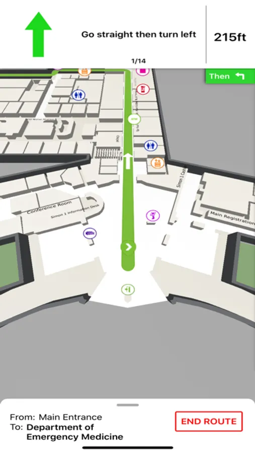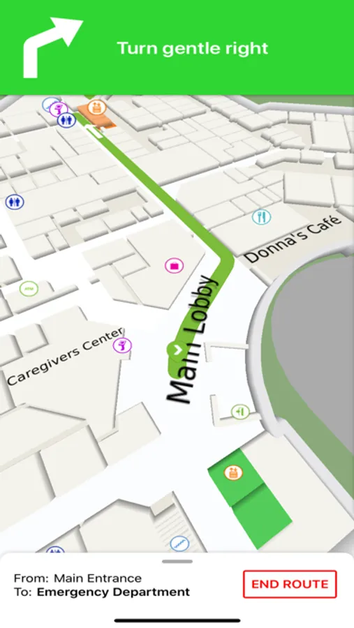 • Points of Interest – Options for dining, vending machines, waiting rooms, shopping, ATMs, restrooms, stairwells, and more located within the hospital.