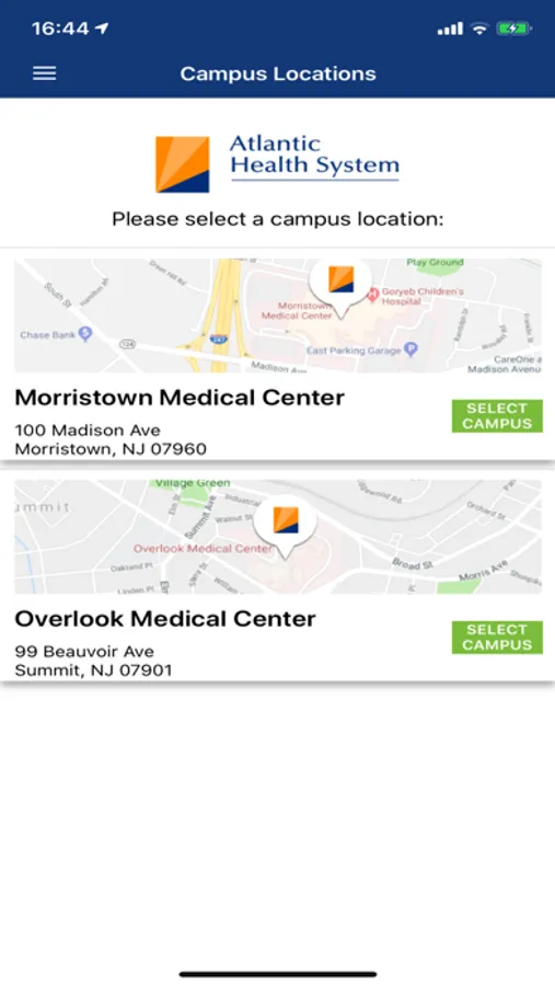 The Take Me There - Atlantic Health app helps you navigate your way through both Morristown Medical Center and Overlook Medical Center in one simple app. In addition to providing step-by-step directions to our facilities, this helpful tool features: