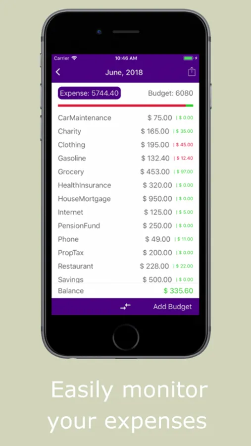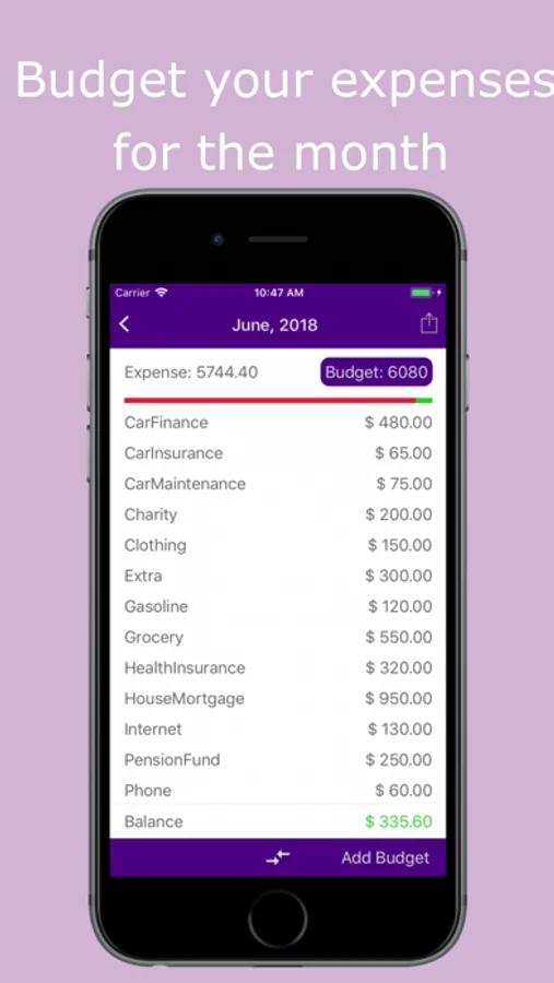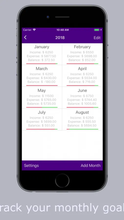 • Optionally set carry on from settings to carry the balance from previous month.