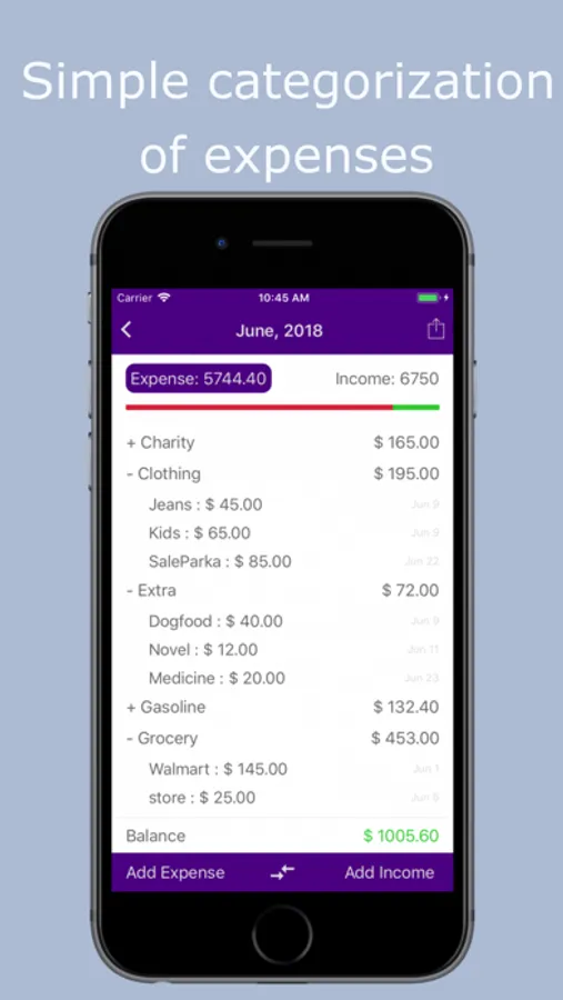 • Intuitive design to enter income, expenses and budget.