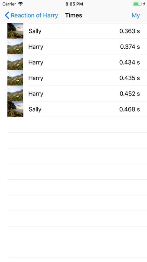 The ten best times get kept in the list available due the information button, low on Reaction view.