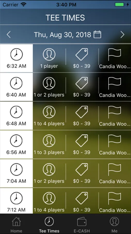 Booking a tee time is as easy as 3-taps and once you've setup your account the app will remember you so its always 3-taps. You can always look up your reservations and cancel reservations if you need to as well. Plus view and redeem your rewards or promotion codes anytime.