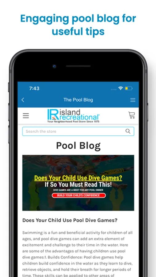 "Stay connected to the ultimate summer experience with the Island Recreational swimming pool stores mobile app! Discover everything you need to create the perfect backyard oasis with our app. Browse our wide selection of pool products, view store locations and hours, and get exclusive access to helpful resources on pool care and maintenance. With the app, you can easily stay up-to-date on the latest news and events at Island Recreational, and even receive personalized advice and support from our expert staff. Download the Island Recreational swimming pool stores mobile app today and make the most of your summer!"
