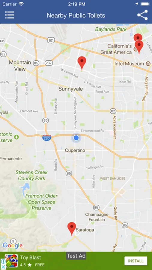 - Search public toilet nearby you just in single tap.