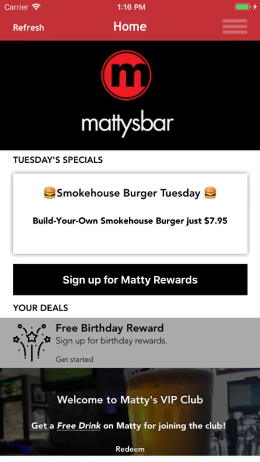 Matty's Bar, Grille & Catering offers the finest in food, drink, hospitality and friendship. Join the Matty's Club for exclusive offers and deals only available to club members including free food and drinks!