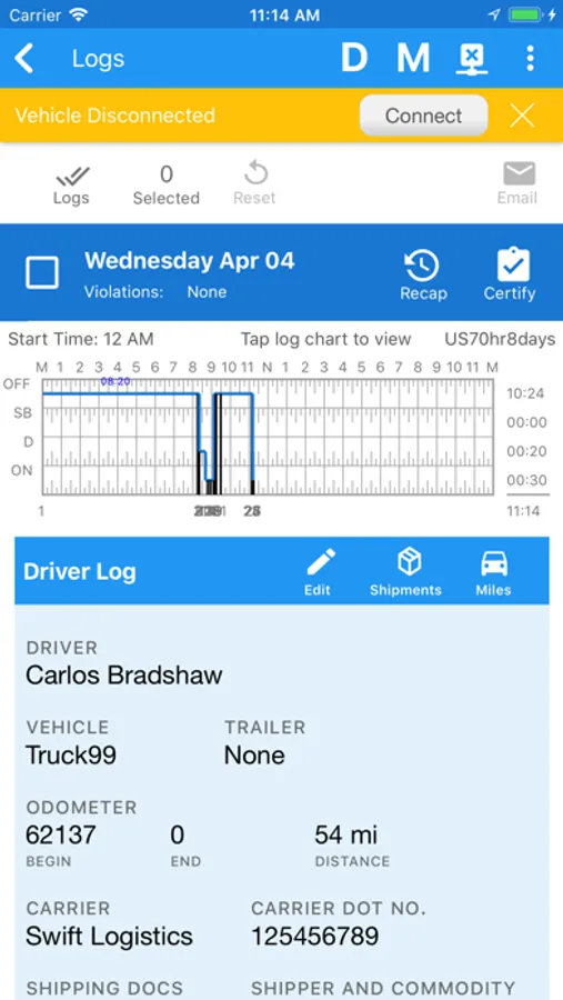 MapAnything ELD Lite is a powerful but easy to use service certified with US Department of Transportation Federal Motor Carrier Safety Administration (FMCSA) regulations for electronic logs and vehicle inspections. Regulations for electronic driving and vehicle inspection logs have become commonplace to ensure the veracity of driver input on Apple devices and ensured compliance with regulations. MapAnything ELD Lite is compliant with federal and state regulations as well as Canadian regulations.