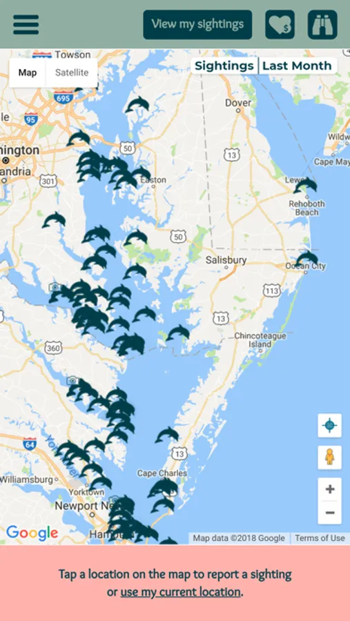 Chesapeake Dolphin Watch allows citizen scientists like you to report when you see a dolphin in the Bay. You simply point to where you saw the dolphin or use your current location and tell us about how many you saw. You can also include photos or videos to provide even more useful information to our team!