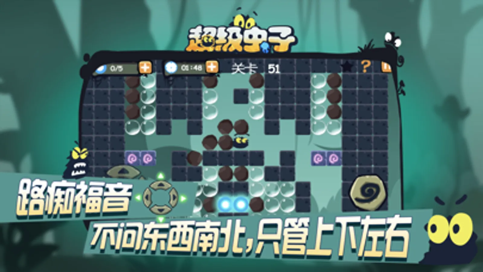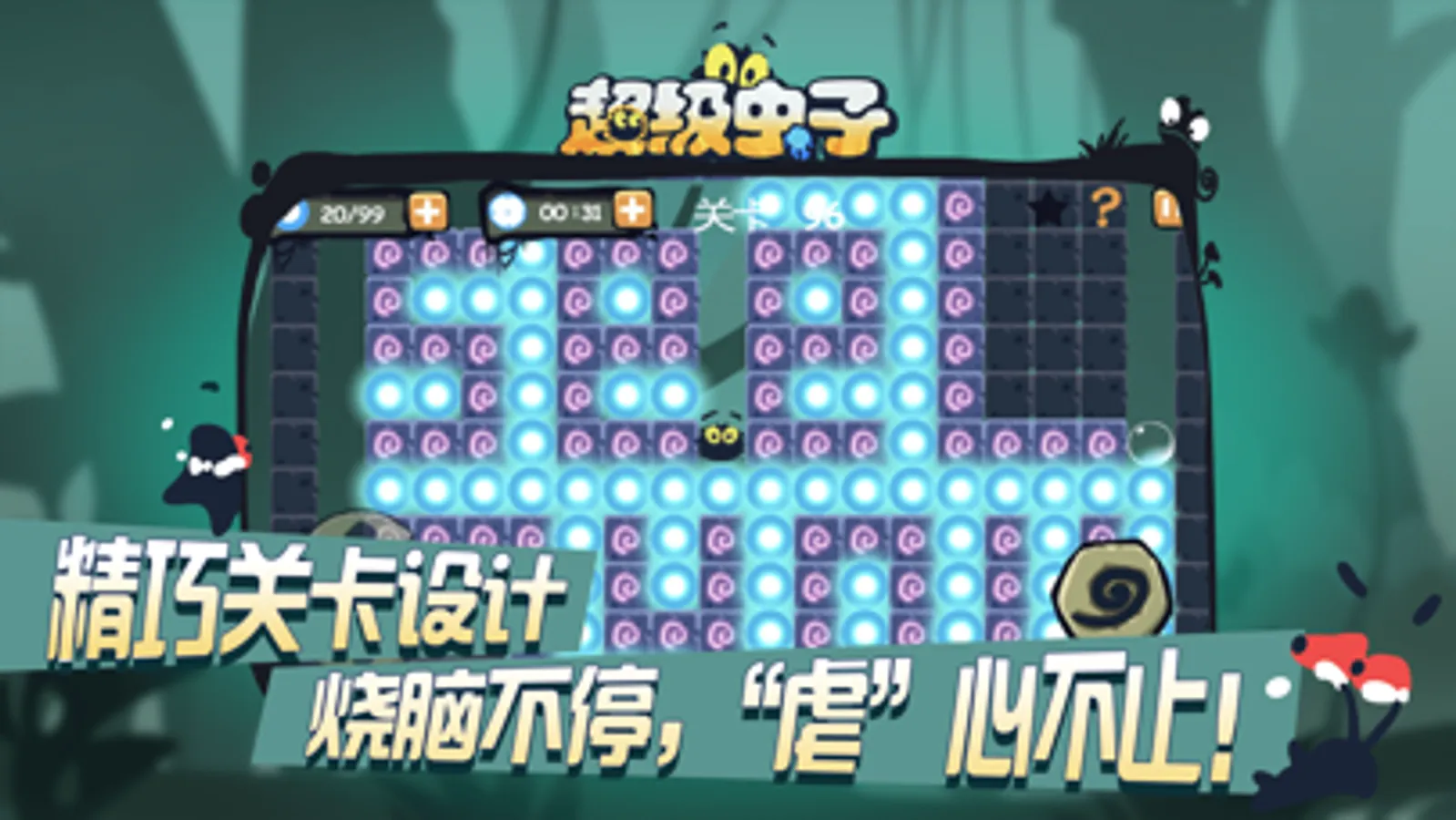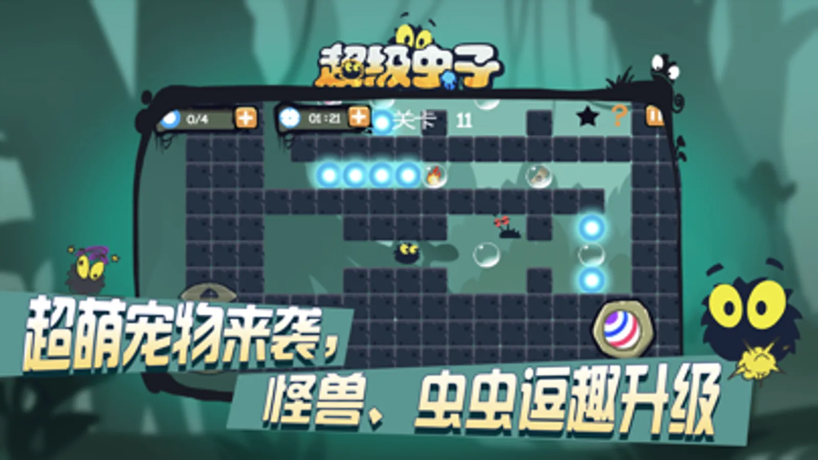 《超级虫子》是一款益智解谜类手游,你将在游戏中扮演一只森林中迷路的超萌虫子,凭借聪明才智躲避天敌并闯过重重关卡,最终逃出生天。