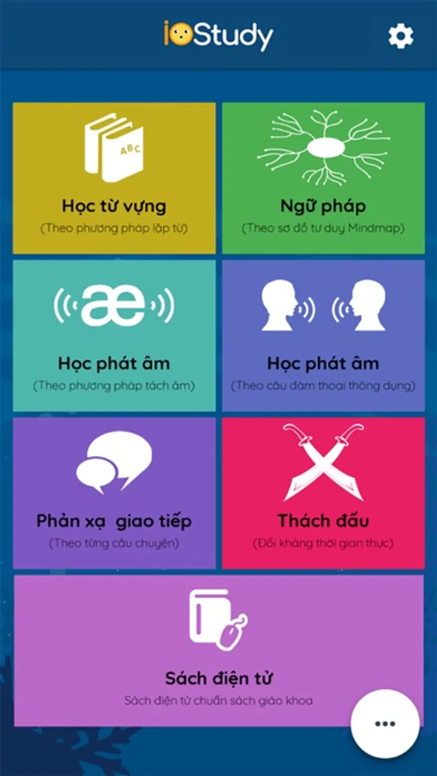 - IOStudy bao gồm tất cả các công cụ luyện tập tiếng Anh cho mọi lứa tuổi như: luyện phát âm bằng phương pháp tách âm, luyện phát âm theo hội thoại, học ngữ pháp theo sơ đồ tư duy, luyện phản xạ giao tiếp qua các câu chuyện, kho video học liệu khổng lồ, luyện từ vựng thông minh với các chủ đề phong phú...