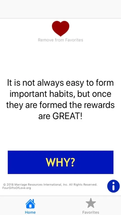In those moments, many will need help to remind themselves about the life-IMPACTING WHY answers. That is WHY this app was designed: To hopefully motivate and offer inspirational comments as couples create a new, thoughtful lifestyle of care, protection, honesty, and time.