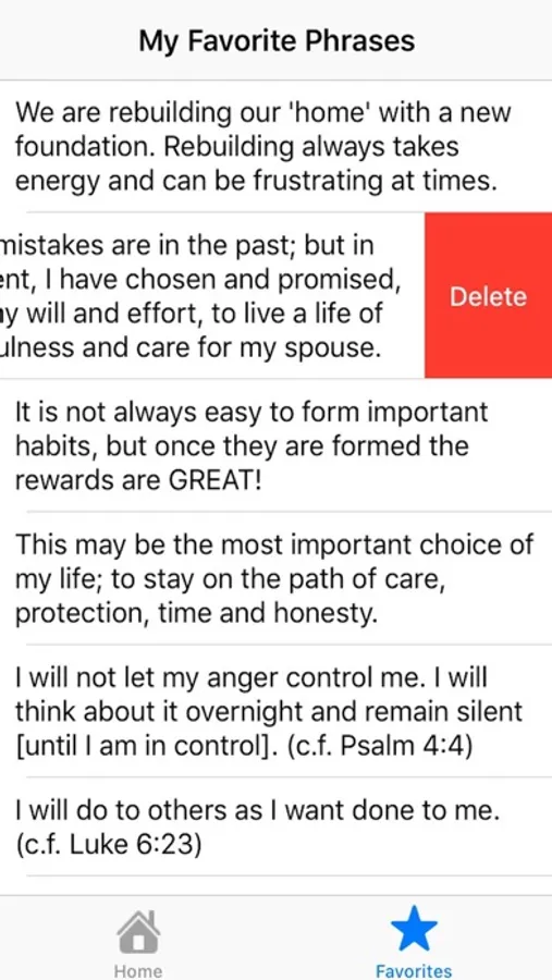 Over 25 phrases are directed to answer the question, "WHY am I doing this new lifestyle?" These phrases are randomly generated, but users have the ability to pick their favorite phrases to be generated first when the app is opened.