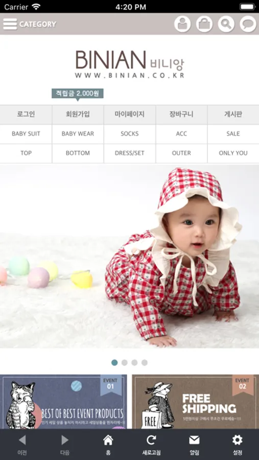 본 APP은 웹사이트 쇼핑몰과 100% 연동되어 있어
