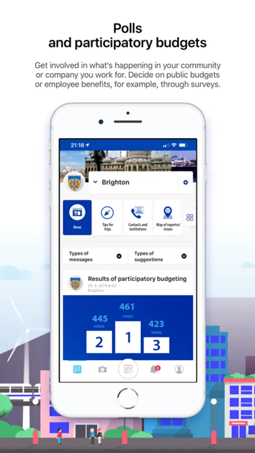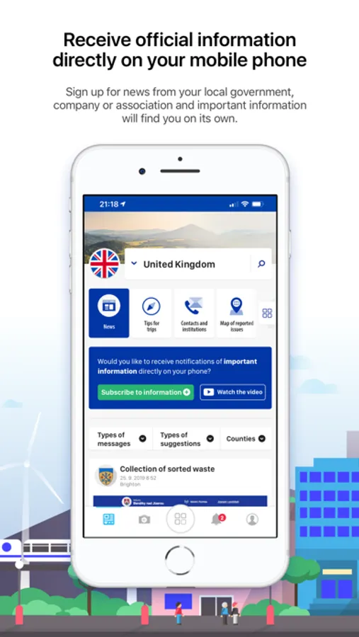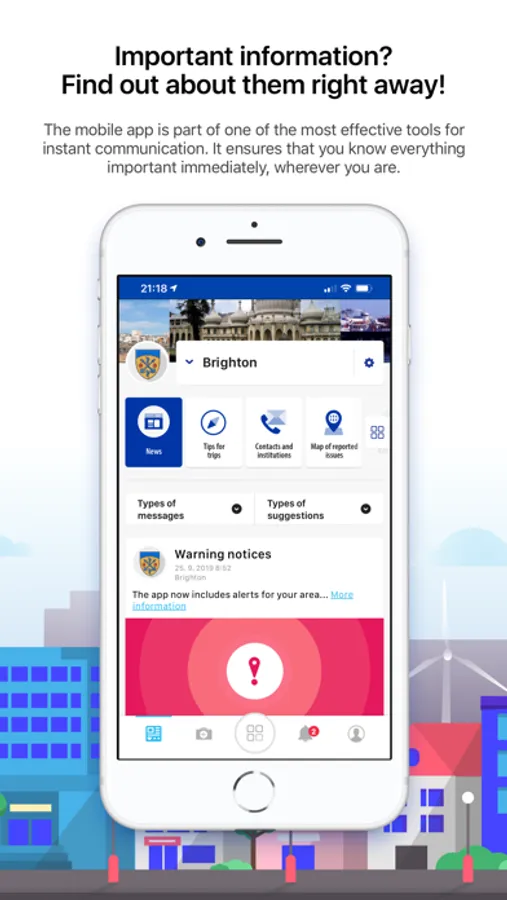 Thanks to the MUNIPOLIS app, you will always have important information from your municipality or city, company or association at your fingertips. Whether it's a planned water outage, an approaching storm, an invitation to a meeting or other important news, nothing will surprise you with the MUNIPOLIS app.