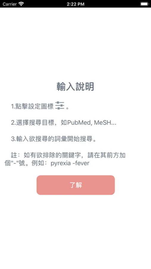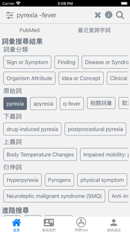・提供使用者相關的醫學專業術語,包含同義字、上義字、下義字、衍伸字。(根據美國國家衛生研究院NIH所定義的統一醫學語言系統UMLS)