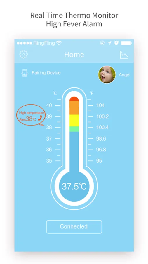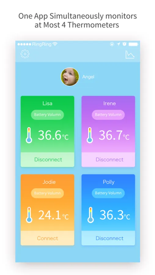 The app provides options for setting degree Celsius or Fahrenheit. It can also connect maximum 4 thermometers together so that you can track the temperature of all your babies.