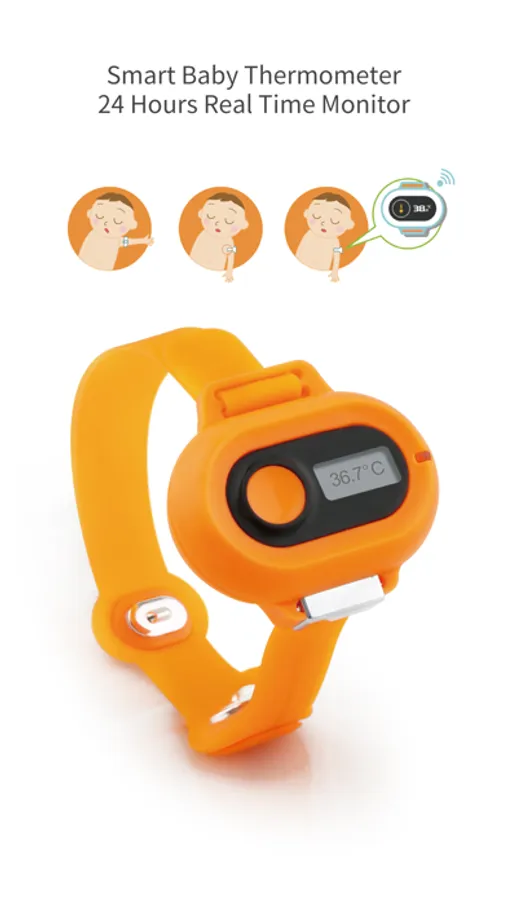 The thermometer is equipped with a soft silicon band safe to wear under the baby armpit for a long time. The parents can check any temperature change either on device or the app. The app can send high fever or low temperature alert so that parents can take action immediately. The parents can check all the history data and use for doctor reference.