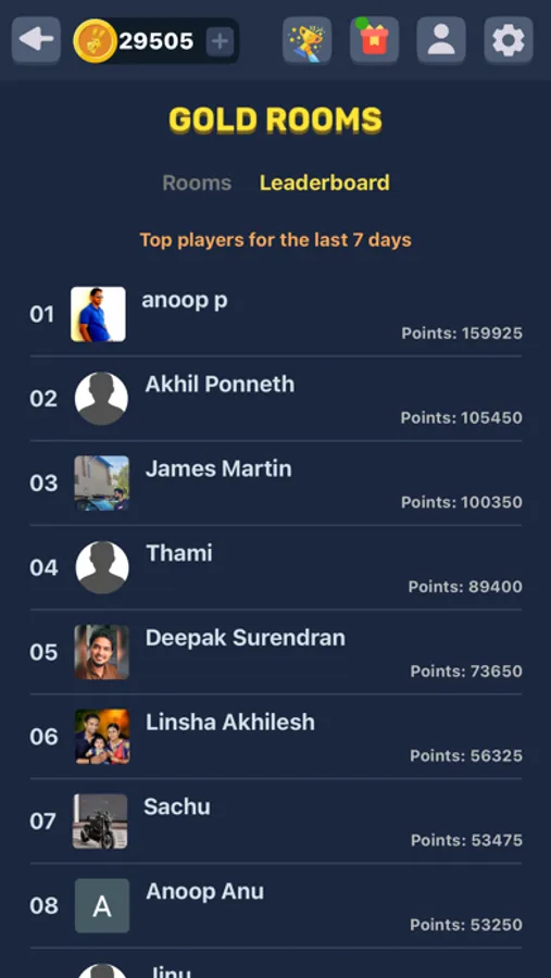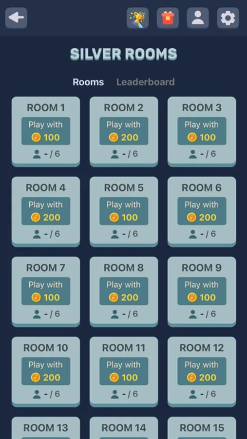 Initially, we have 3 categories of rooms - Bronze, Silver, and Gold each of the room have different bet ranges. Each category contains multiple rooms. Players can join a rooms if there are vacant chairs available.