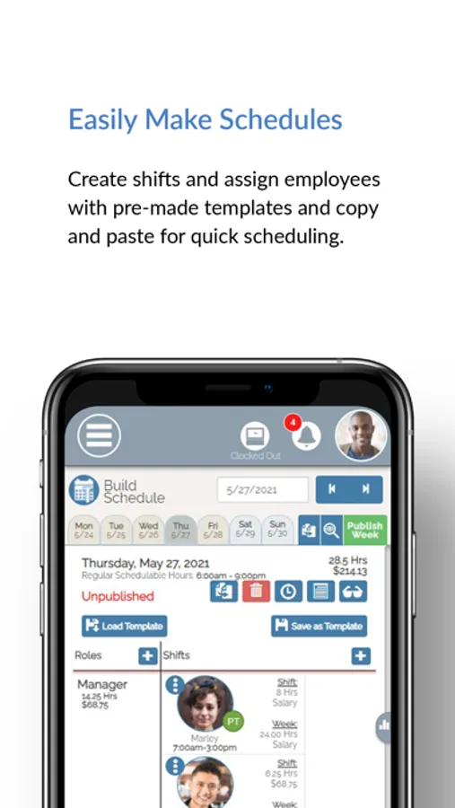 • Create auto-load templates for each day of the week—with or without employees included. Great for recurring schedules!